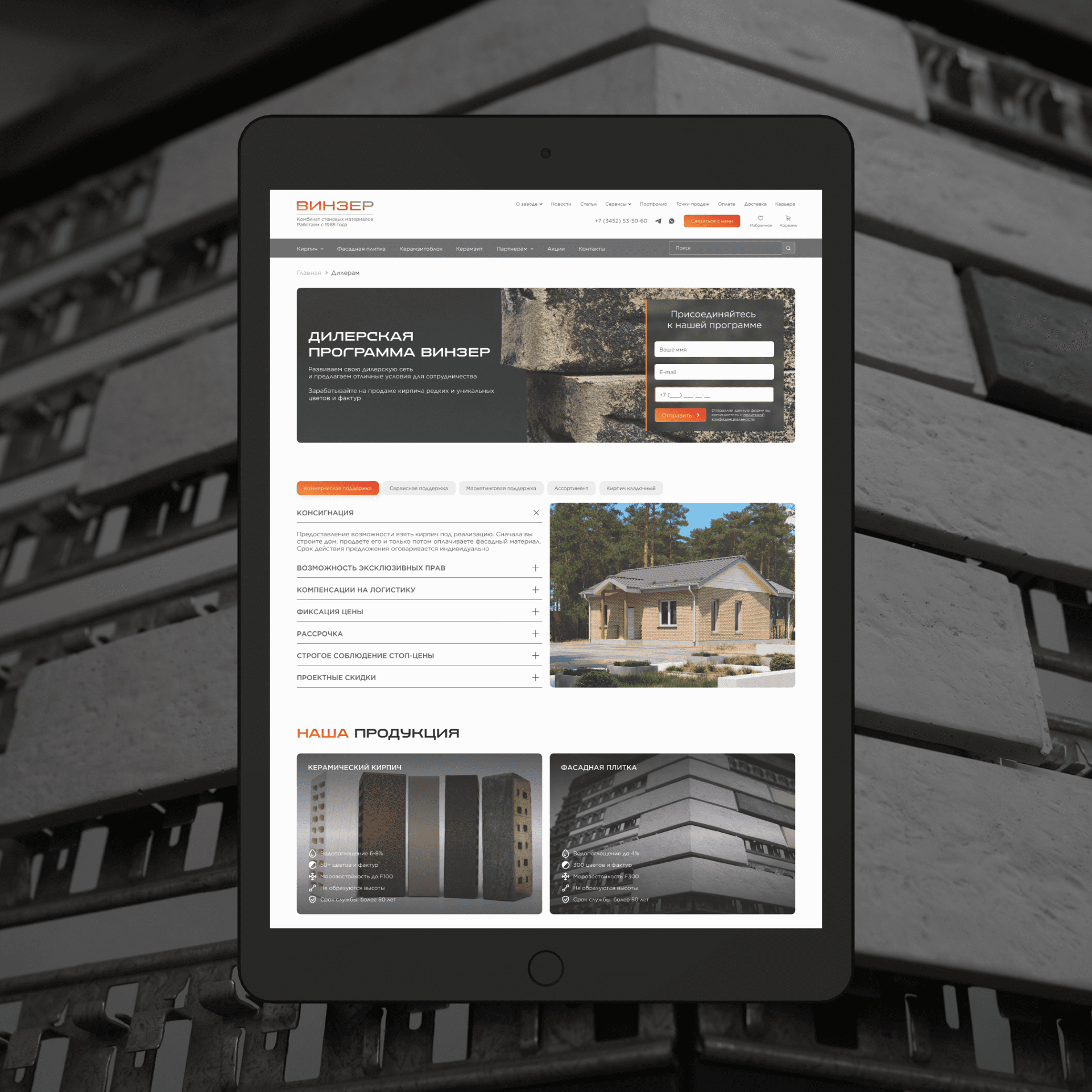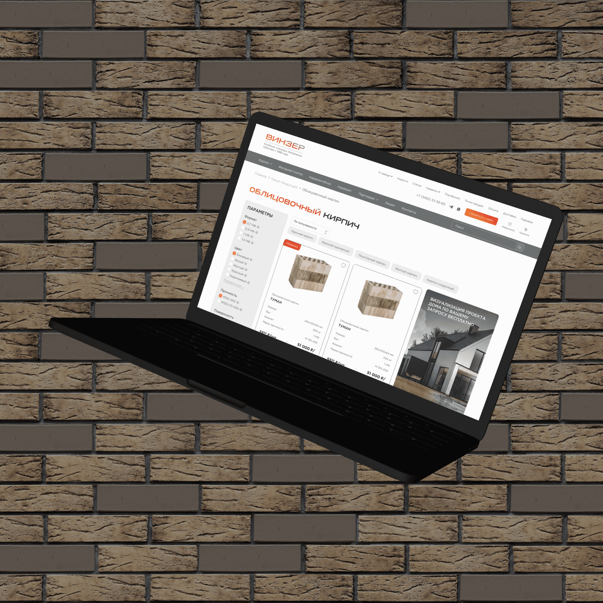 Сделать современный, удобный интернет-магазин с фокусом на продажу кирпича, плитки и блоков.