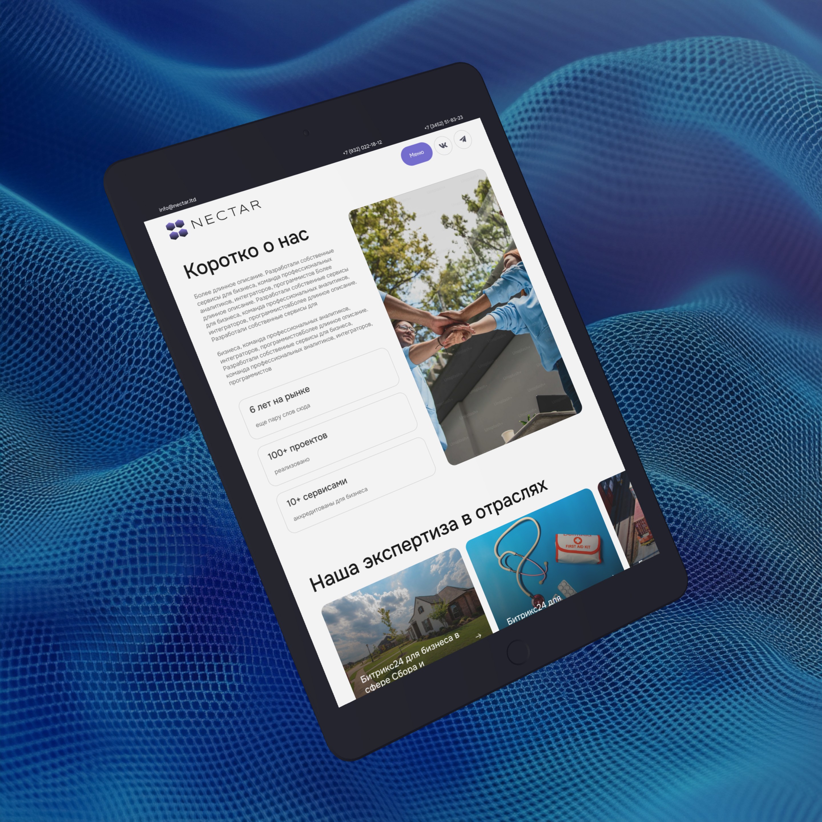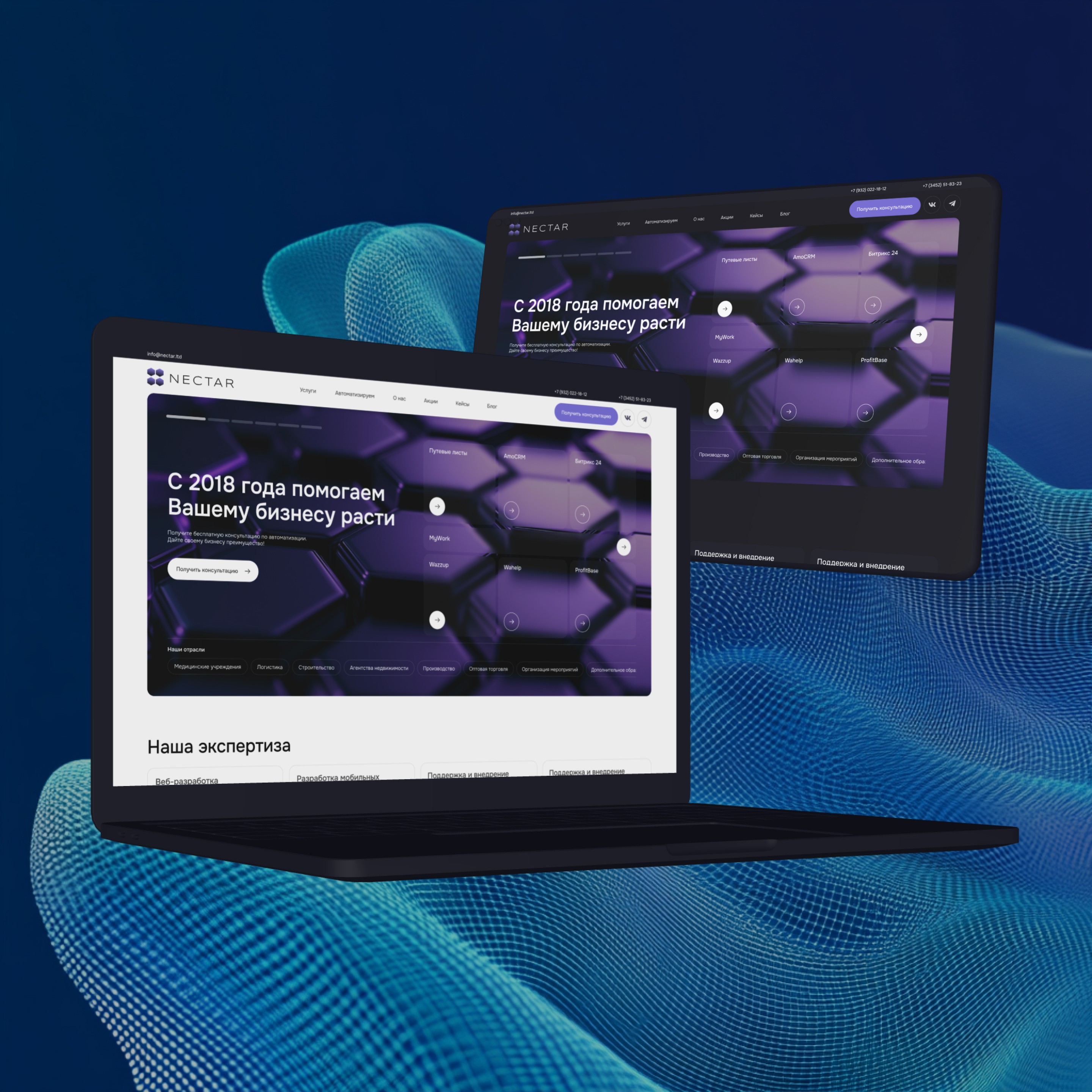 Необходимо было сделать сайт, который не только рассказывает о компании, но и эффективно ведет посетителей к целевым действиям: заказ консультации, демонстрации продукта или отправка запроса на разработку.