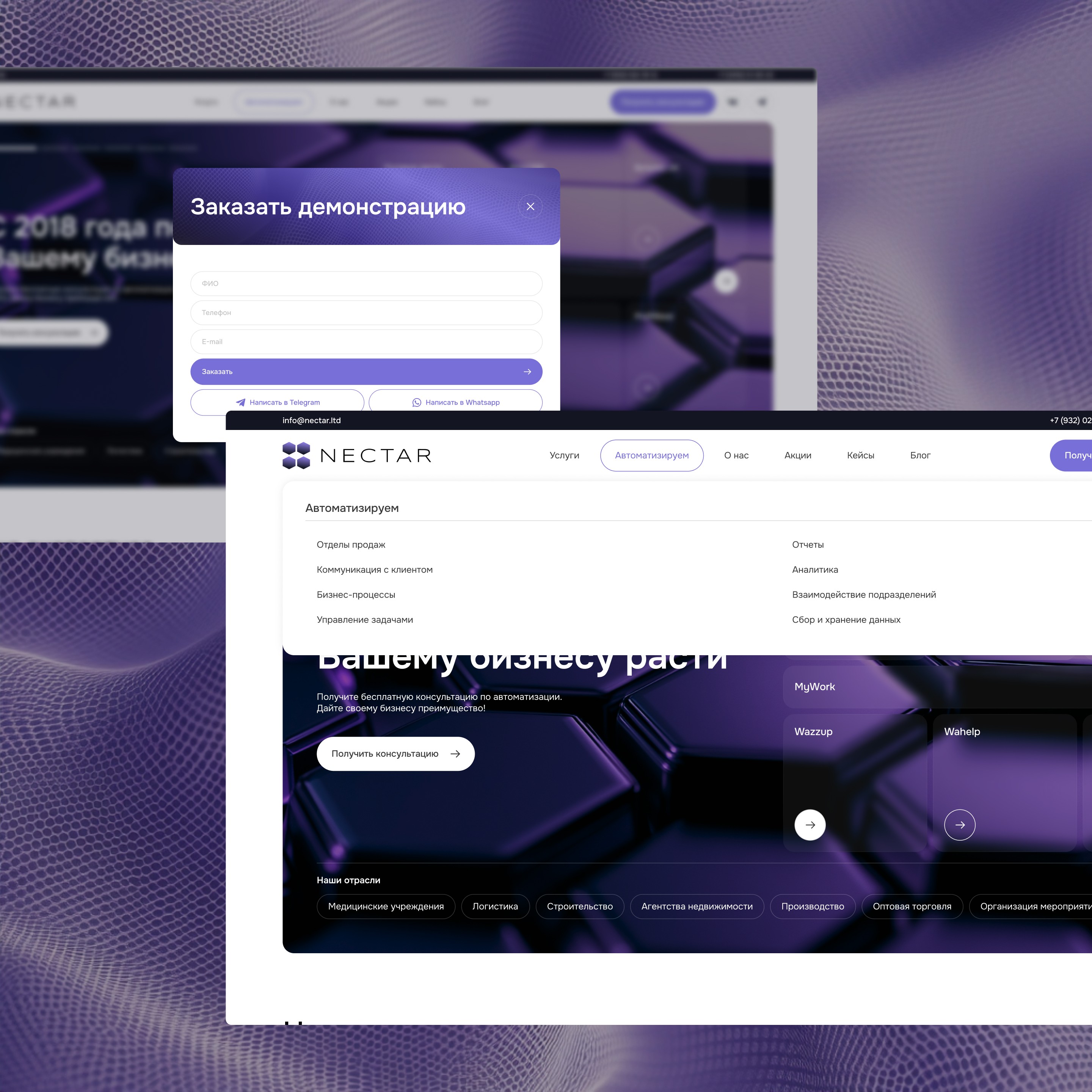 Разработка удобных и заметных форм для консультаций, заявок и демонстраций продуктов.